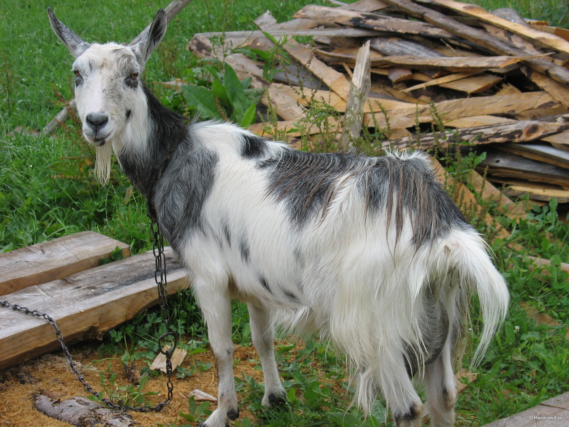 А це шкіра таки з кози, треба облупити її, але не обрізати. Треба стягнути шкіру, як сорочку. Задні ножки напорюються, а голову відрізують.
