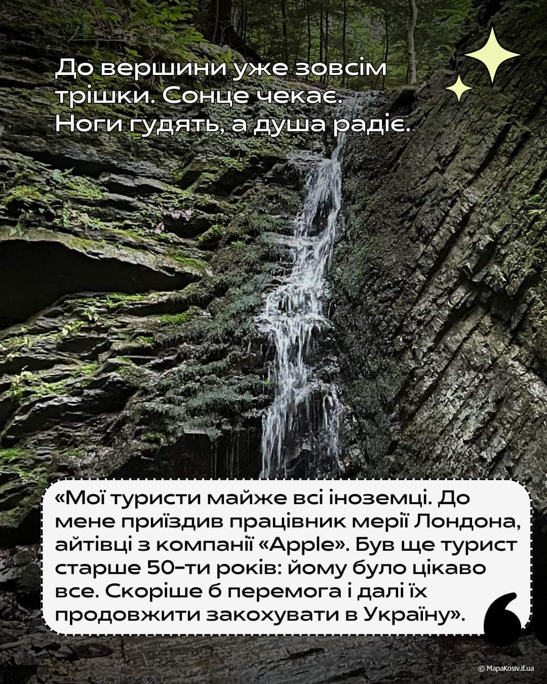 – До речі, тут неподалік є Таємничі водоспади – я туди теж туристів вожу, – розповідає дорогою Тарас. – Знаєш, чому Таємничі? Бо я їх так назвав. І назва прижилась.