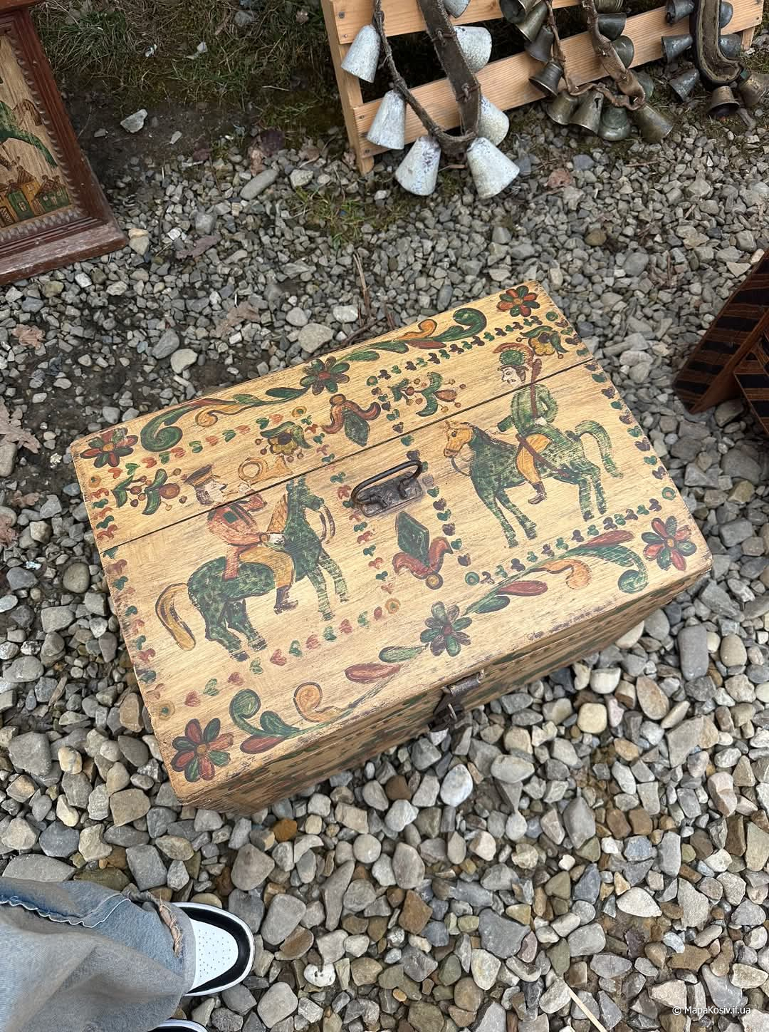 Чого тільки не побачиш на Косівському базарі! Великодні писанки, різьблені, інкрустовані й випалені дерев’яні вази, шкатулки, рахви, пласти, орли, ложки, діжки, бербениці, розписаний керамічний посуд, куманці, скульптурки, кахлі, вишиті і ткані сорочки, рушники, килими і верети, ліжники, вироби із бісеру, металу, шкіри і навіть сиру…