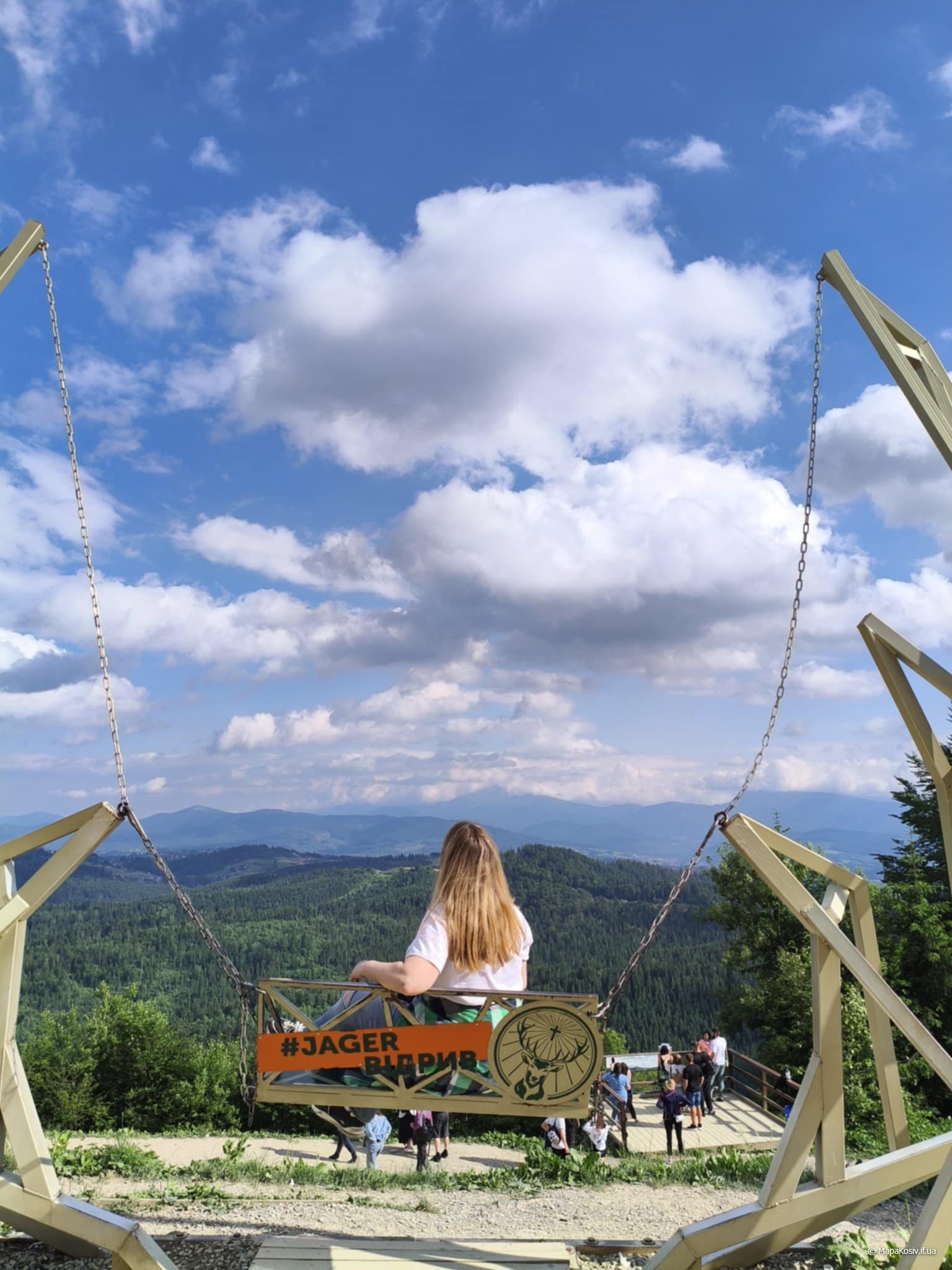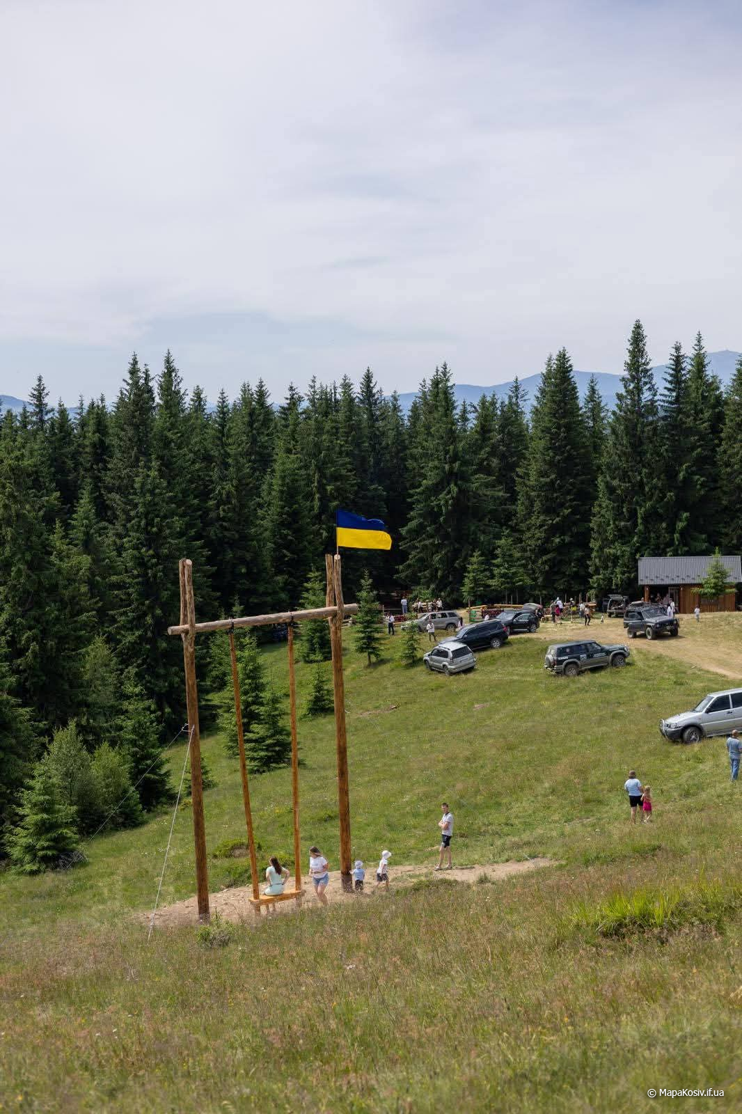 Одна з найвисокогірніших гойдалок, адже знаходиться на висоті 1300 метрів над морем. Звідси відкривається неймовірний краєвид, адже видно найвищі гори українських Карпат, в тому числі й Говерлу