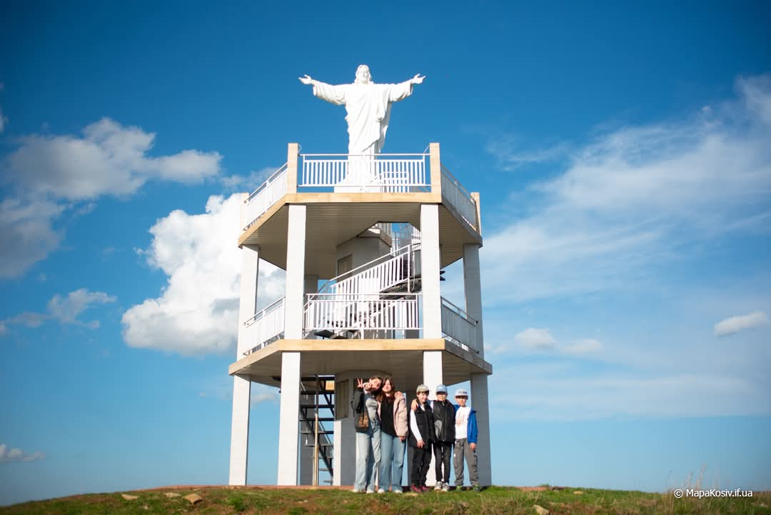 На бетонному постаменті стоїть 3-метрова статуя Ісуса Христа, над якою працював відомий скульптор. З оглядового майданчика відкривається вид не тільки на мальовничі краєвиди Карпат, а також на три церкви, в трьох різних селах нашого району. А наголовніше, цей оглядовий майданчик зведений на честь нашої спільної перемоги над російським ворогом. До речі, збудований оглядовий майданчик для людей, на власні кошти місцевого жителя.